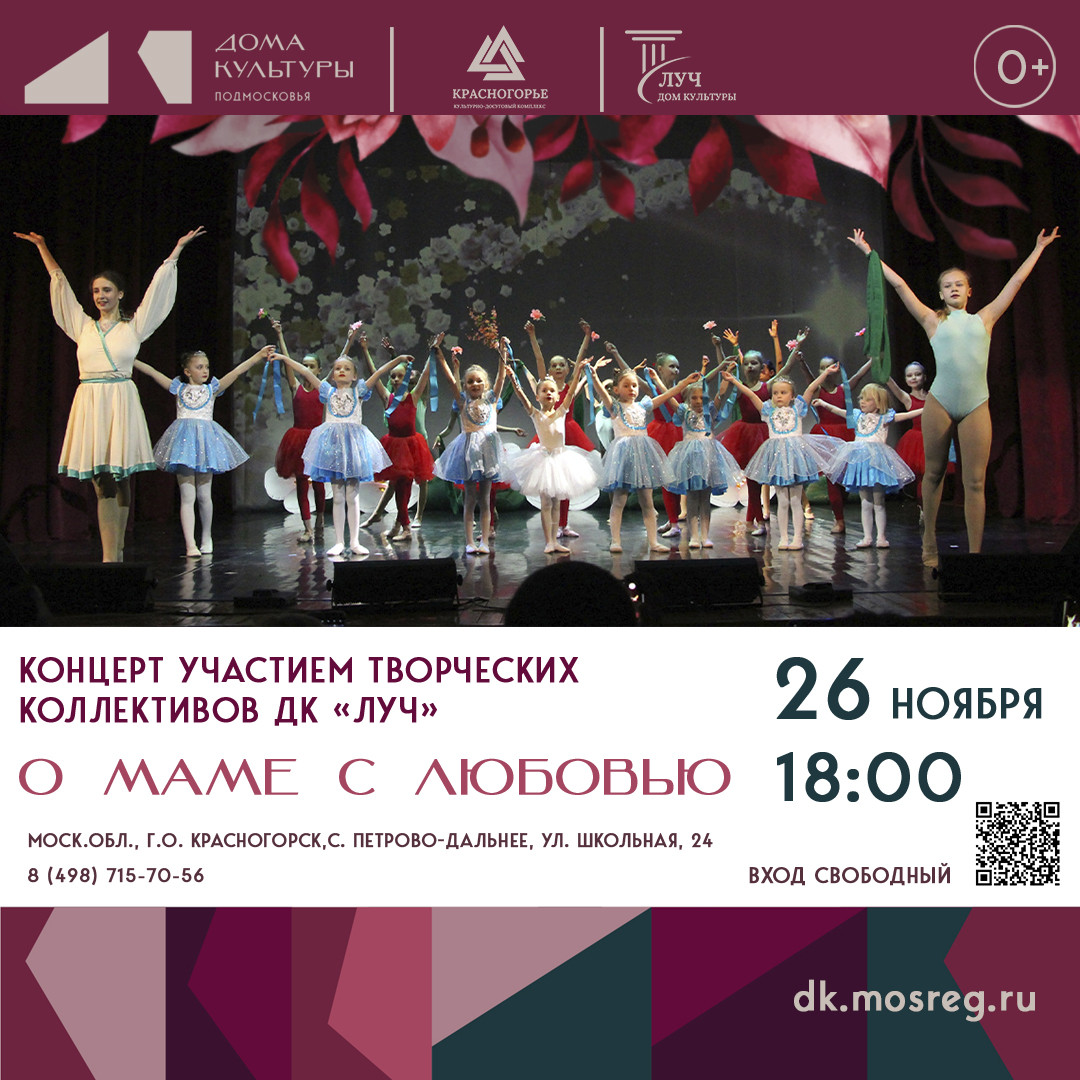 Последнее воскресенье ноября – день, когда каждая мама становится центром вселенной. История этого тёплого праздника тянется сквозь столетие, став таким же важным, как и День отца. А лучший подарок для мамы — не просто букет или открытка, а мгновения, наполненные красотой и эмоциями. Артисты Дома культуры «Луч» превратят этот день в живую симфонию поздравлений. Танцоры закружат в вихре красок, юные вокалисты споют о самом дорогом, а народные коллективы оживят традиции, которые хранят материнские руки. Этот концерт – не просто выступления, а коллективное признание в любви всем мамам и бабушкам. Пусть их сердца откликнутся на этот праздничный ансамбль — яркий, душевный, созданный с благодарностью.