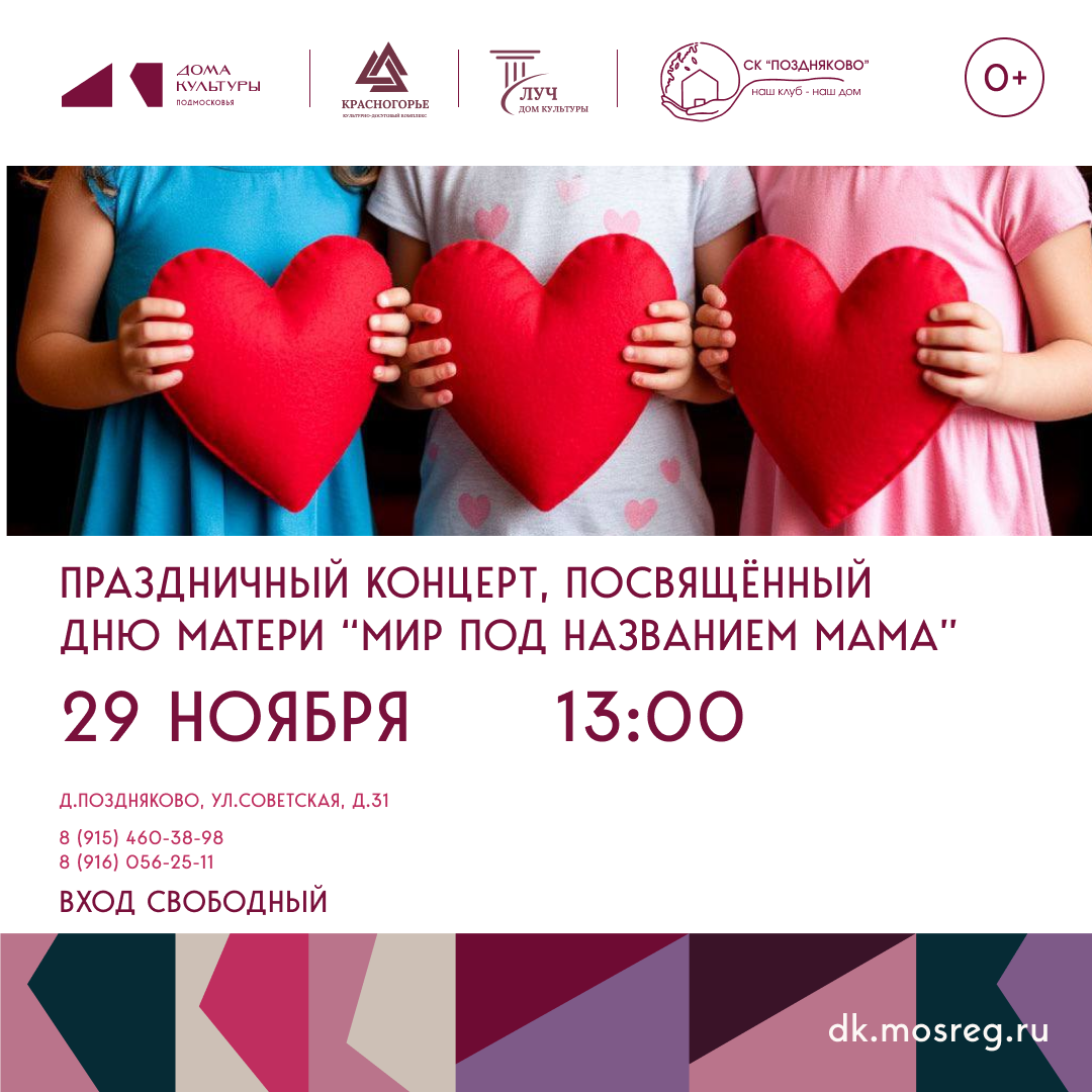 В честь этого замечательного праздника в стенах сельского клуба «Поздняково» состоится праздничный концерт. Талантливые исполнители порадуют зрителей своим искусством, исполняя трогательные песни о материнской любви и представляя зажигательные танцевальные номера, наполненные искренними чувствами.