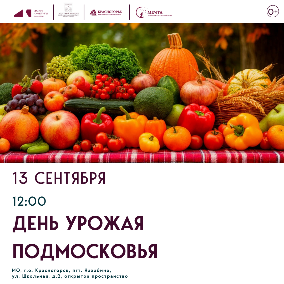 Приглашаем вас отметить День урожая Подмосковья в Нахабино! Это событие обещает стать ярким праздником, полным радости и веселья!