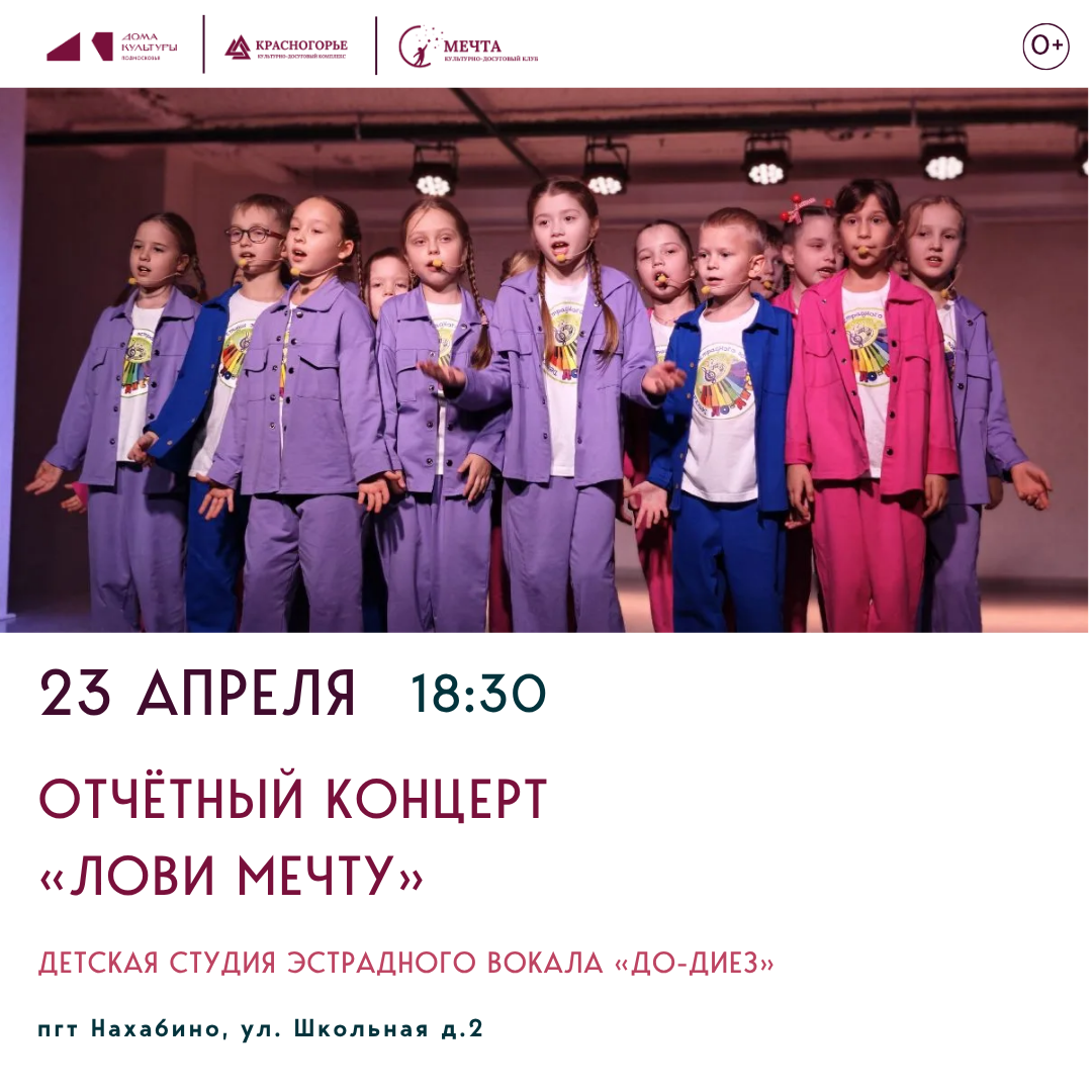 23 апреля 18:30 - Отчетный концерт «Лови мечту» Детской студии эстрадного вокала «До-Диез».